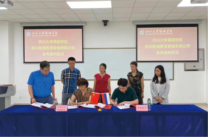 四川致俄教育咨询有限公司 与四川大学锦城学院达成战略合作关系 展开合作办学业务和留学出口管理支持 ZINORUSS has established a strategic partnership with Jincheng College of Sichuan University, and together they have launched collaborative educational programs and support for study abroad management and export services.