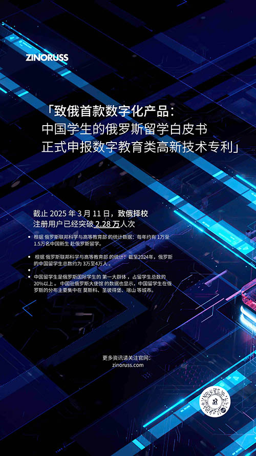 致俄教育集团开发的俄罗斯留学择校小程序——致俄择校正式发布 The first Russian study-abroad school selection mini-program developed by ZINORUSS, known as ZINORUSS School Selection, has officially been launched